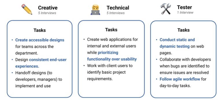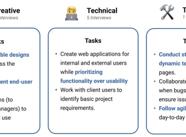 The first step in my design process is understanding the needs of the people I'm designing for. Over the course of several interviews, I helped develop three main personas.