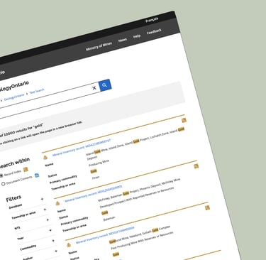 Modernizing the discovery and access of geoscience data for clients served by the Ministry of Mines.